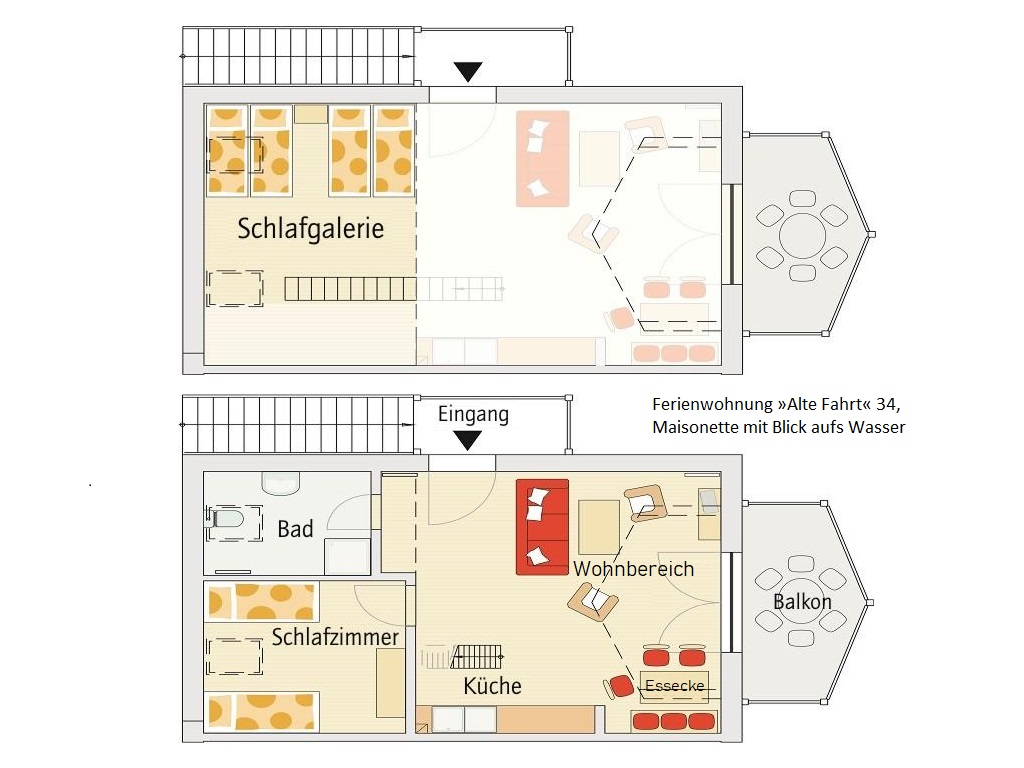 Ferienwohnung »Alte Fahrt« 34, Maisonette mit Blick aufs Wasser
